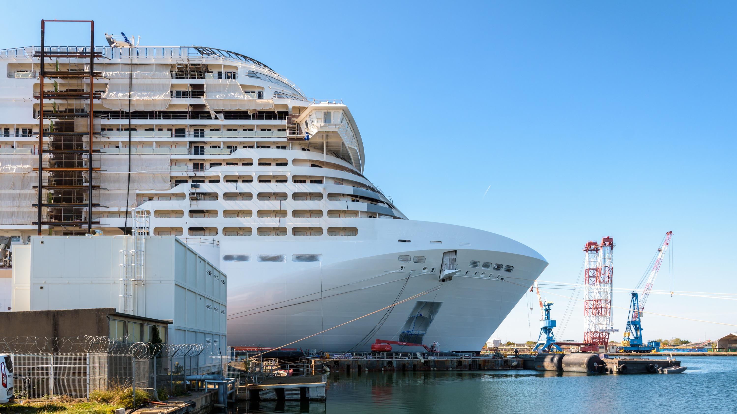 Un paquebot en construction aux Chantiers de l’Atlantique, à Saint-Nazaire (Loire-Atlantique), en septembre 2022.