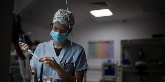 Un membre du personnel du laboratoire prépare son matériel pour une procédure de procréation médicalement assistée (PMA), au centre de fertilité du groupe hospitalier Diaconesses-Croix-Saint-Simon, à Paris, le 25 octobre 2022.