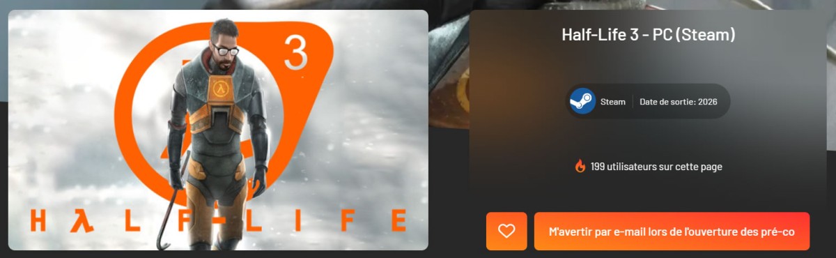 Instant Gaming en mode RKO outta nowhere avec une page Half Life 3