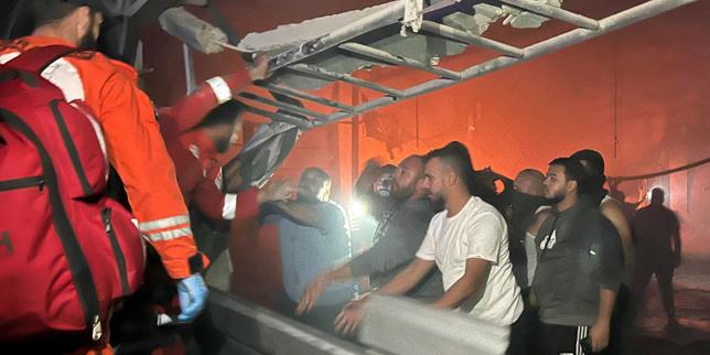 Des secouristes recherchent des survivants dans les décombres après une attaque de drone israélien contre le camp de réfugiés palestiniens d’Aïn al-Helweh, près de la ville de Saïda, dans le sud du Liban, le 18 novembre 2025.