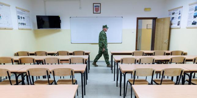 Une salle de classe du centre d’entraînement militaire Eugen Kvaternik, à Slunj (Croatie), le 29 octobre 2025.