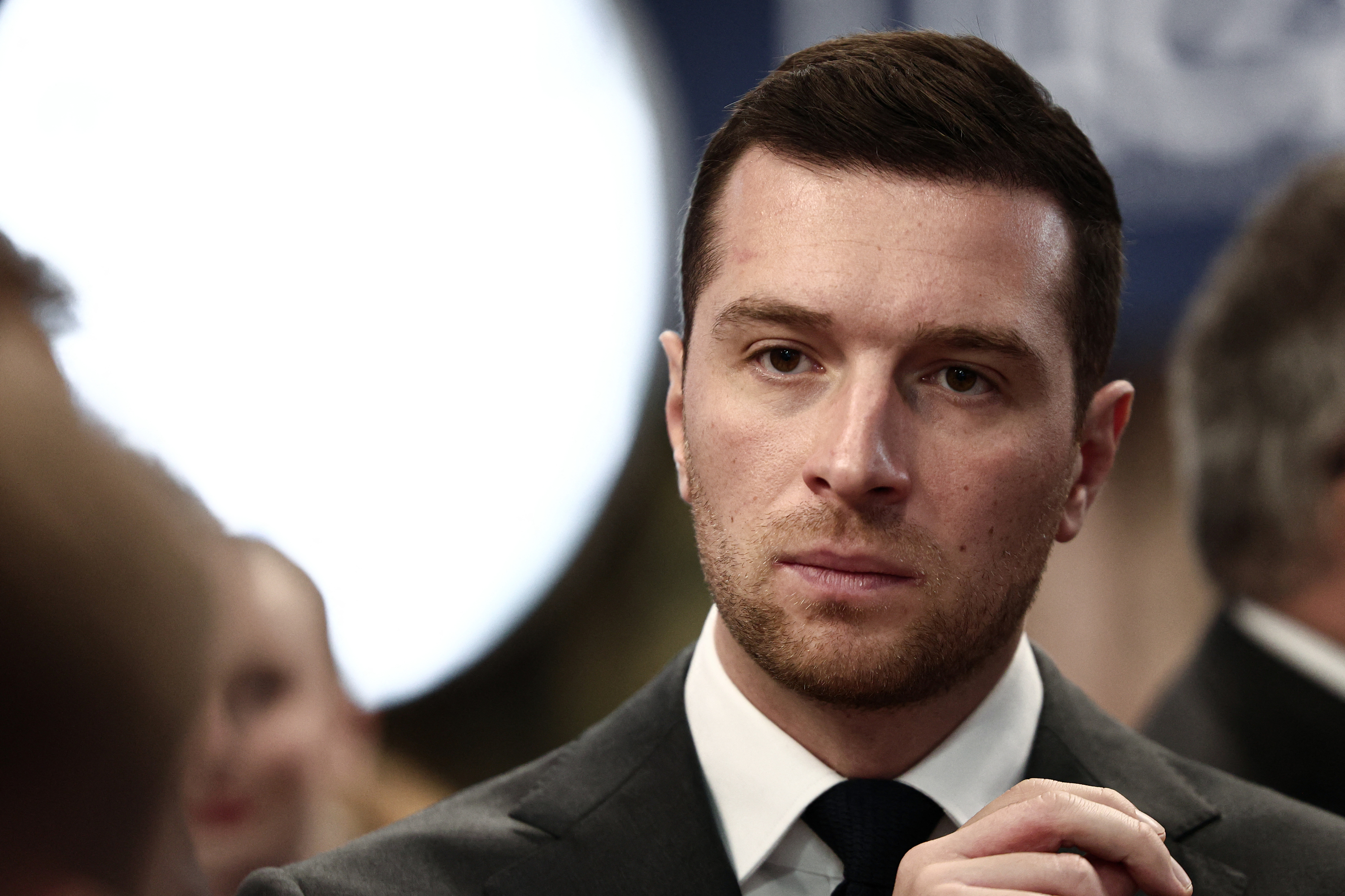 L’envoyé spécial américain, Steve Witkoff (deuxième à gauche), et le secrétaire d’Etat américain, Marco Rubio (à droite), lors de pourparlers avec une délégation ukrainienne à Genève, le dimanche 23 novembre 2025.