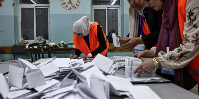 Les agents électoraux palestiniens commencent à compter les bulletins après la fermeture des bureaux de vote dans la ville d’Al-Bireh, en Cisjordanie, le 25 avril 2026.