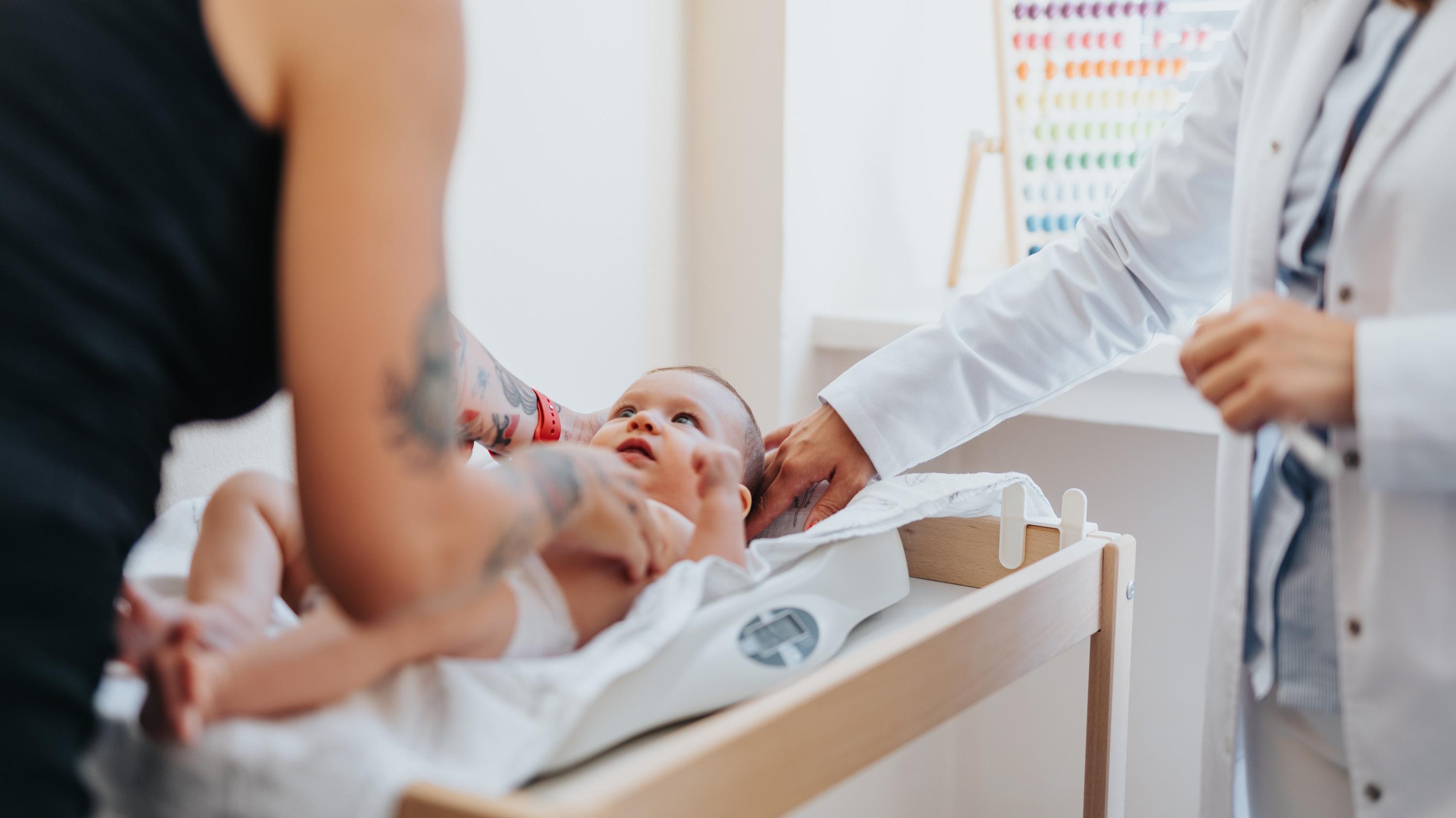 Un médecin examine des jumeaux palestiniens dans une tente médicale dans la région de Mawasi, à Khan Younis, dans le sud de la bande de Gaza, le 18 septembre 2025.