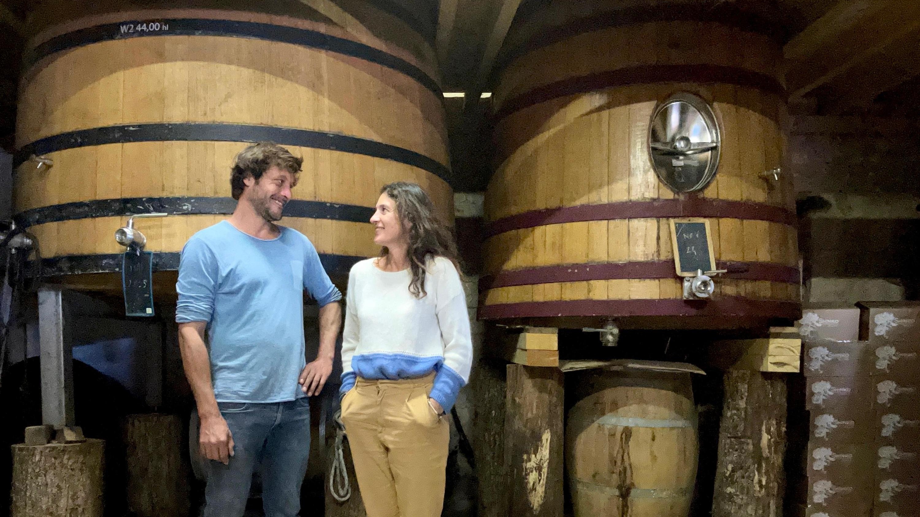 Dans leur chai à Sainte-Terre, Madina Querre et Adrien David Beaulieu, produisent du vin et de la sauce soja.