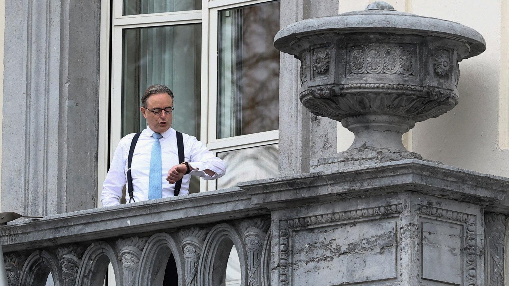 Le premier ministre belge, Bart De Wever, sur le balcon de son bureau la veille du sommet des dirigeants de l’Union européenne, à Bruxelles, mercredi 17 décembre 2025