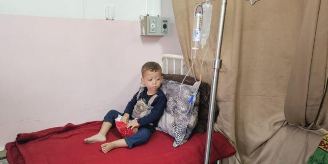 Ryad Al-Hams, 2 ans, atteint d’une tumeur de la moelle épinière, à l’hôpital Nasser à Gaza, le 4 novembre 2025. Il est en attente d’une évacuation médicale.