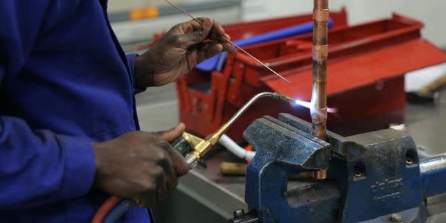 Un apprenti plombier, au lycée professionnel Hector-Guimard, à Paris, le 17 janvier 2025.