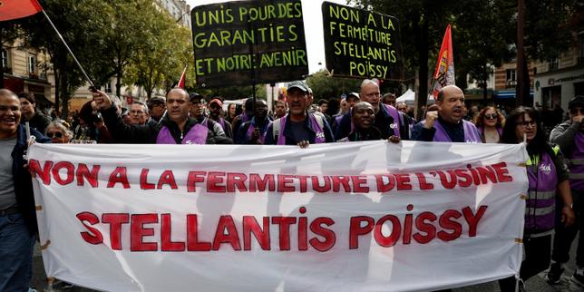 Manifestation à Paris contre la fermeture du site Stellantis de Poissy (Yvelines), le 2 octobre 2025.