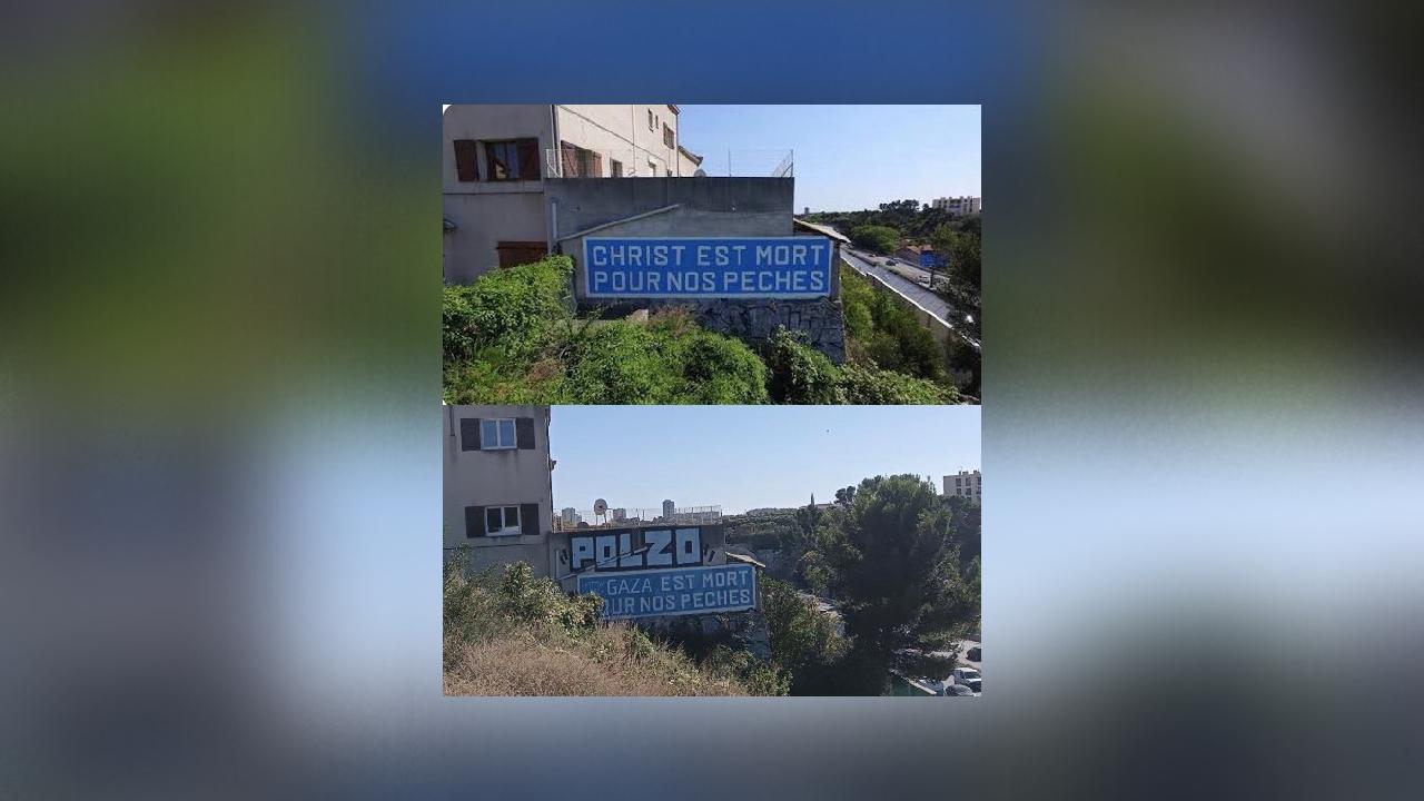 Ce verset de la Bible peint il y a près de 70 ans, et visible aux abords de l’autoroute A7, a été vandalisé peu de temps avant le 7 octobre. L’inscription a été remise en état ce mardi.