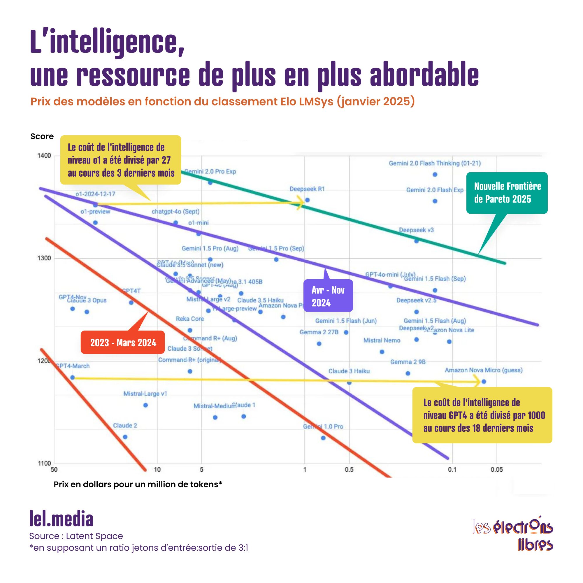 Pendant que certains se noient encore dans un verre d’eau de 50 centilitres, les ingénieurs, eux, font fondre la consommation. Les modèles récents sont découpés en « experts » et chaque requête n’active que certains d’entre eux ; on ne réentraîne presque jamais un modèle à partir de zéro ; on compresse les réseaux neuronaux, on réduit la précision des calculs, on passe de seize bits à quatre. Dans le même temps, les puces spécialisées ont gagné un facteur mille d’efficacité en quinze ans. Nvidia, Google, Alibaba, Mistral ou DeepSeek multiplient les gains à chaque itération : une simple mise à jour logicielle suffit aujourd’hui à diviser par deux la consommation d’un processeur.