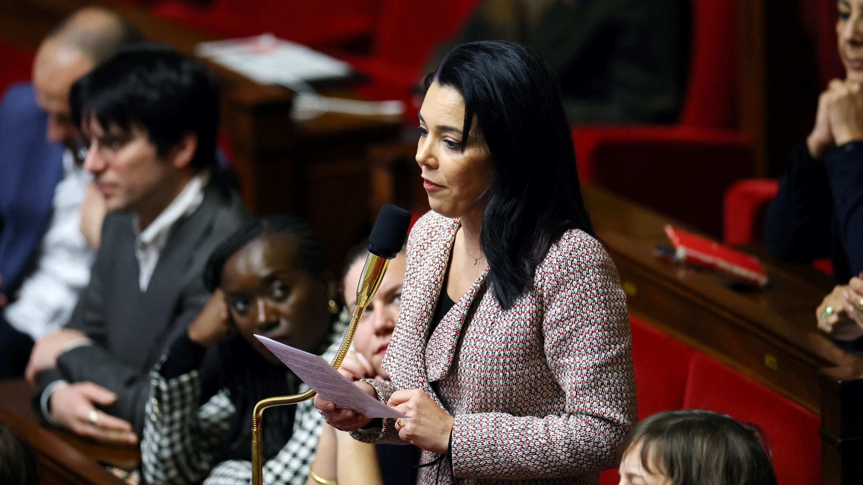 La députée Sophia Chikirou, du parti d’opposition d’extrême gauche La France Insoumise (LFI) et du groupe parlementaire « Nouveau Front Populaire » à l’Assemblée nationale à Paris, en France, le 16 décembre 2025.