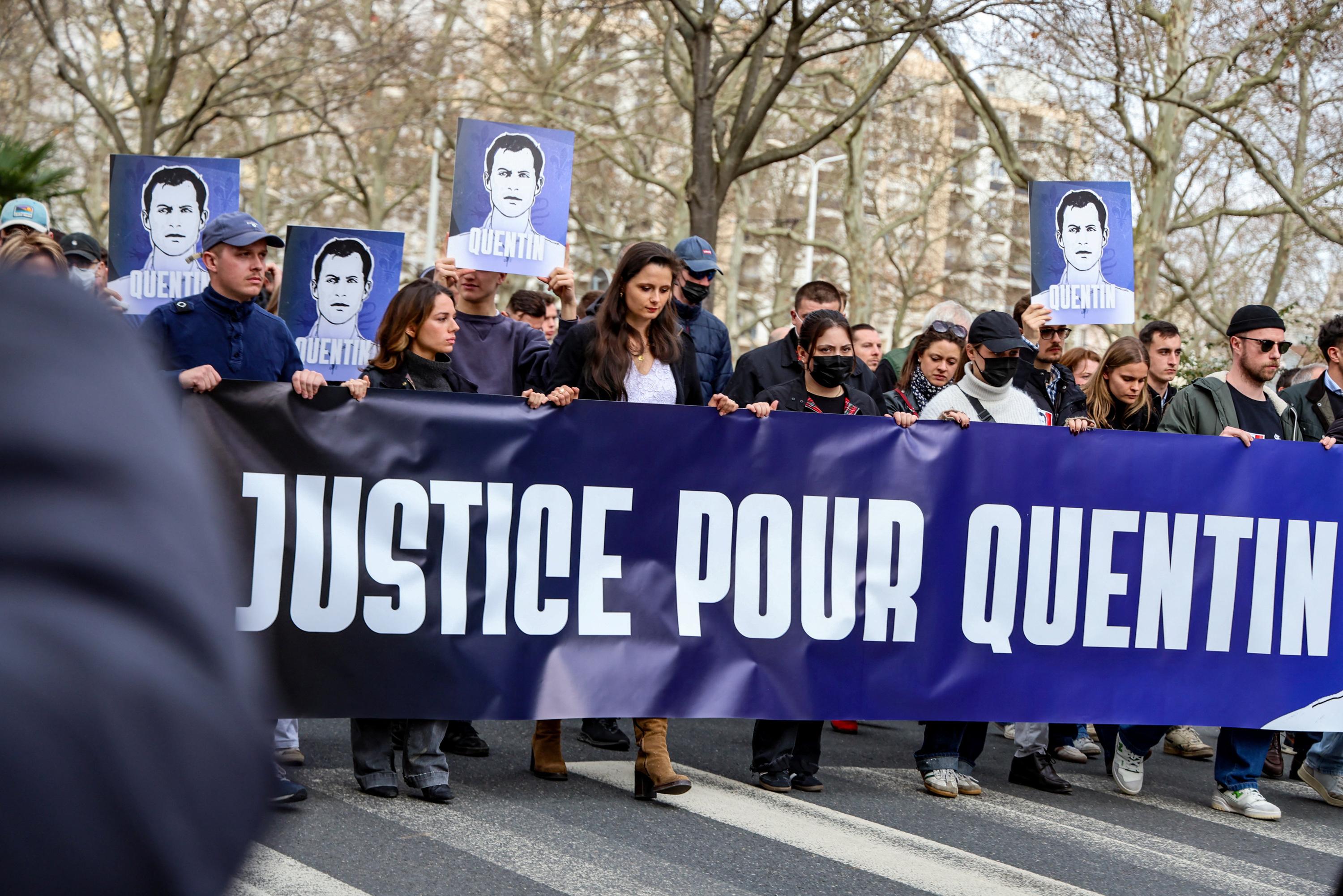 En tête de cortège, les manifestants réunis à Lyon en hommage à Quentin Deranque ont déployé une banderole clamant «Justice pour Quentin».