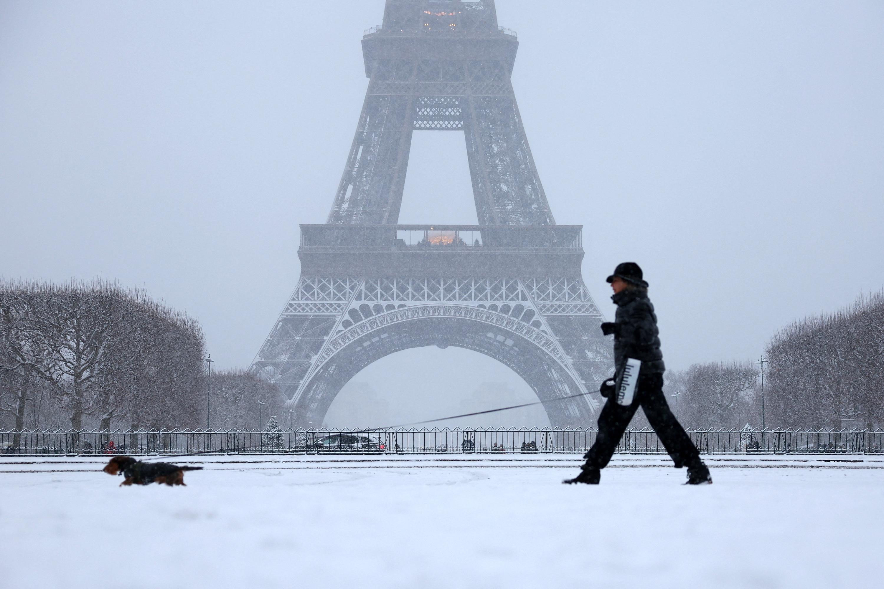 Les alentours enneigés de la Tour Eiffel lundi.