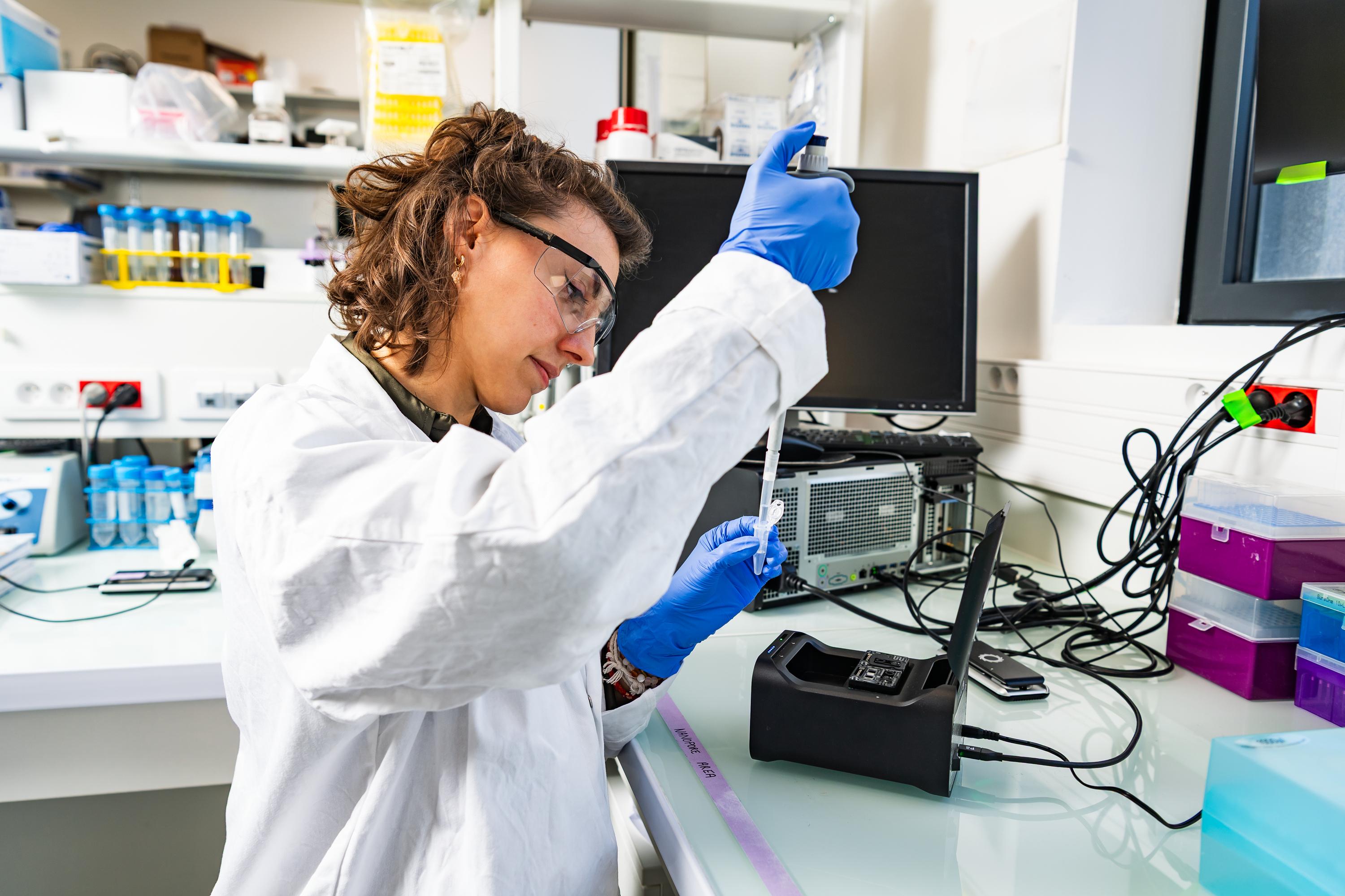 Préparation du séquençage d’un échantillon d’ADN synthétique avant son utilisation pour déchiffrer un message secret.