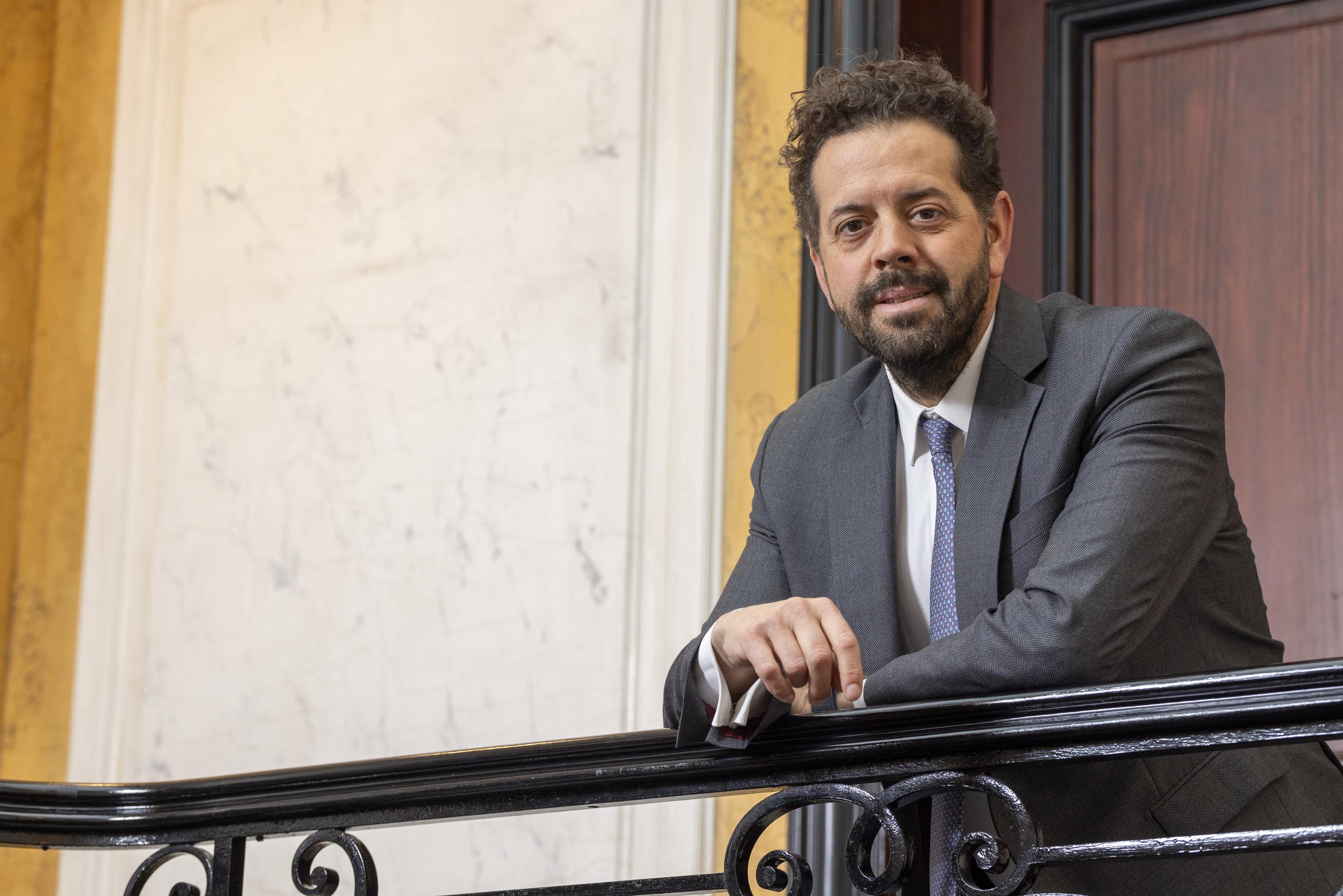 Marwan Mery pose dans ses bureaux de la rue Guénéguaud, à Saint-Germain des Prés.