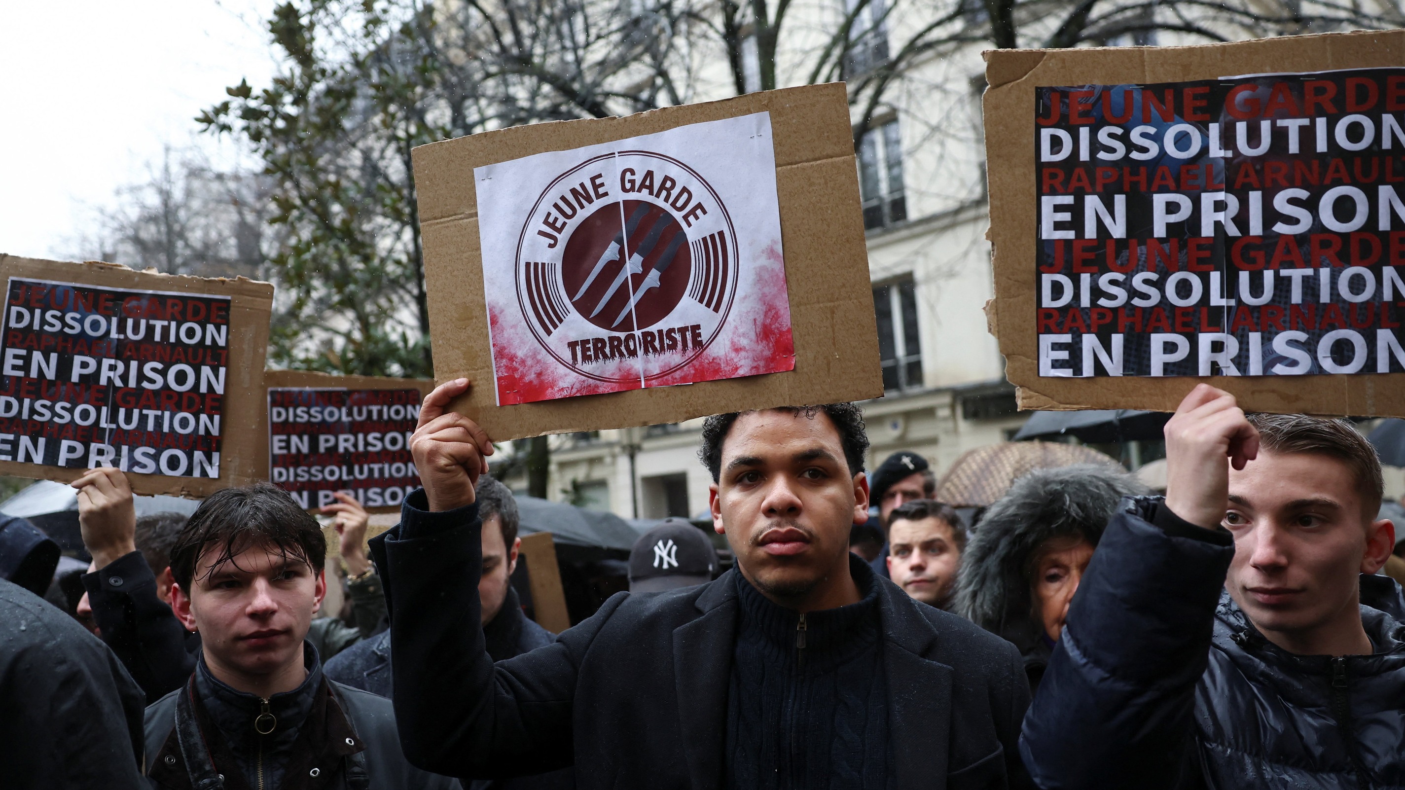 Images représentant Quentin Deranque, le jour d’une marche en son hommage à Lyon, en France, le 21 février 2026.