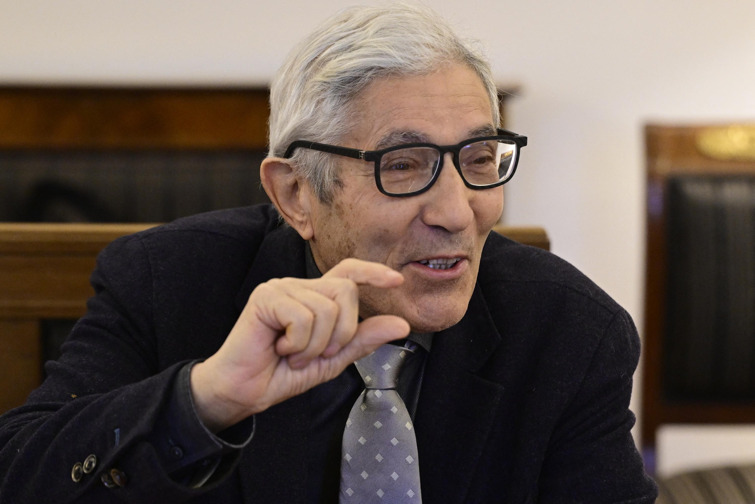 French-Algerian writer Boualem Sansal gestures ahead a meeting with the German President at the Presidential palace in Berlin, on January 8, 2026. (Photo by John MACDOUGALL / POOL / AFP)