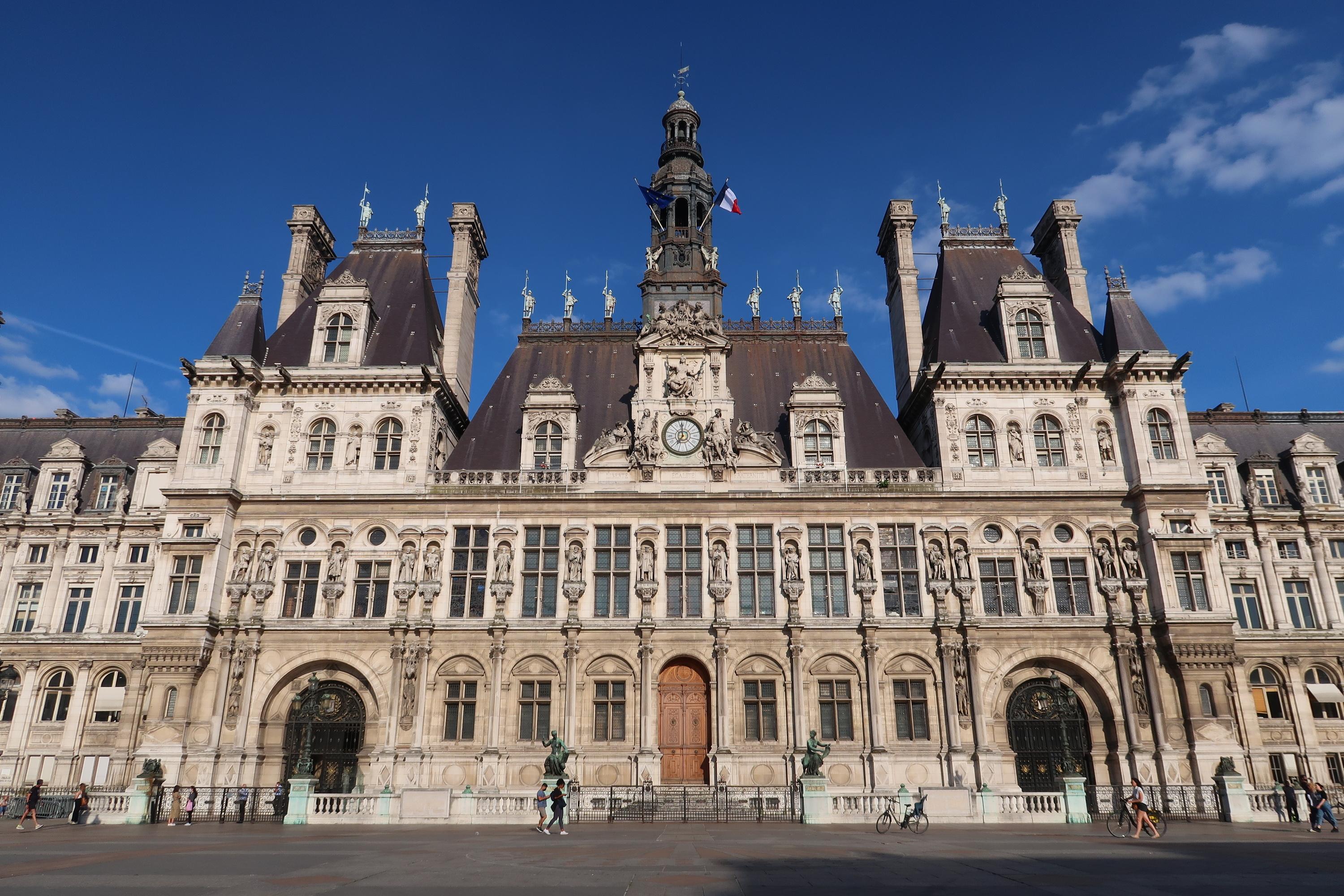 Façade de l’hôtel de ville / mairie de Paris (France).