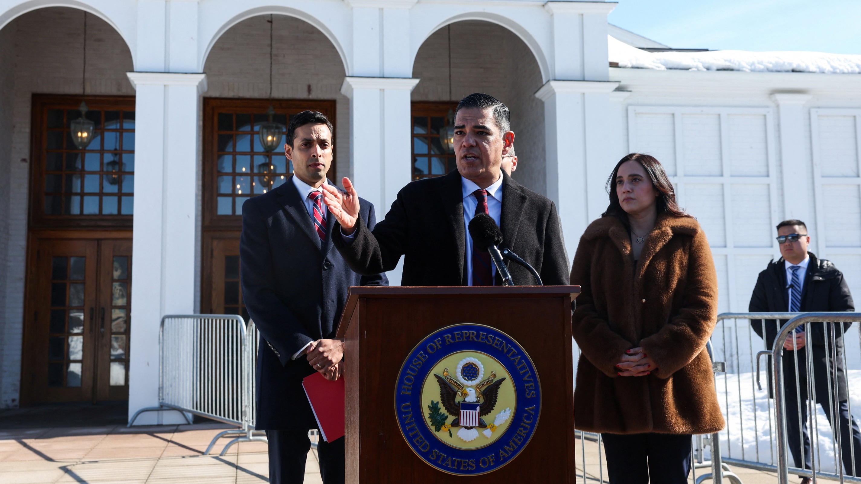 Le Représentant américain Robert Garcia s’exprime le jour de l’audition de l’ancienne Secrétaire d’État Hillary Clinton, au Chappaqua Performing Arts Center à Chappaqua, New York, États-Unis, le 26 février 2026.
