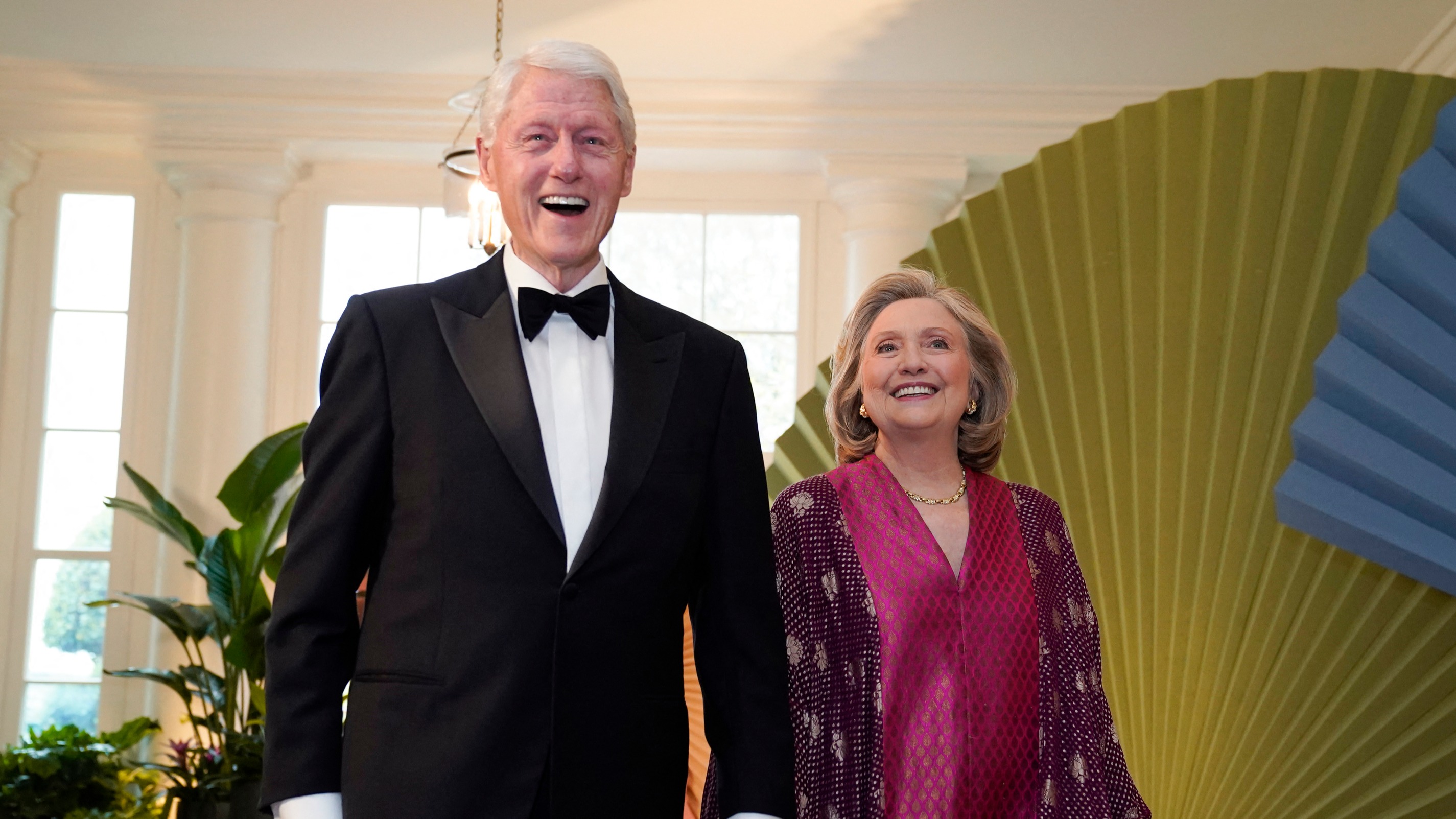 Bill et Hillary Clinton arrivent dans la salle des libraires de la Maison Blanche à l’occasion du dîner d’État avec le président kenyan à la Maison Blanche à Washington, DC, le 23 mai 2024.